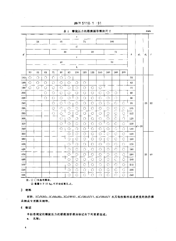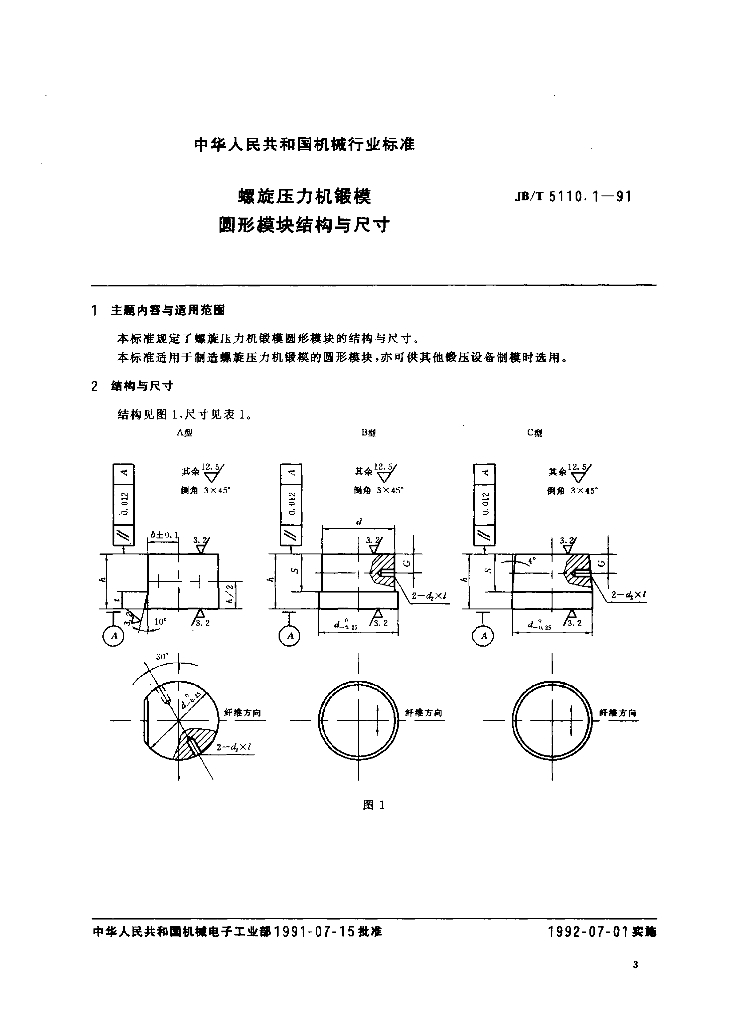 JB/T 5110.1-1991 螺旋压力机锻模 圆形模块结构与尺寸