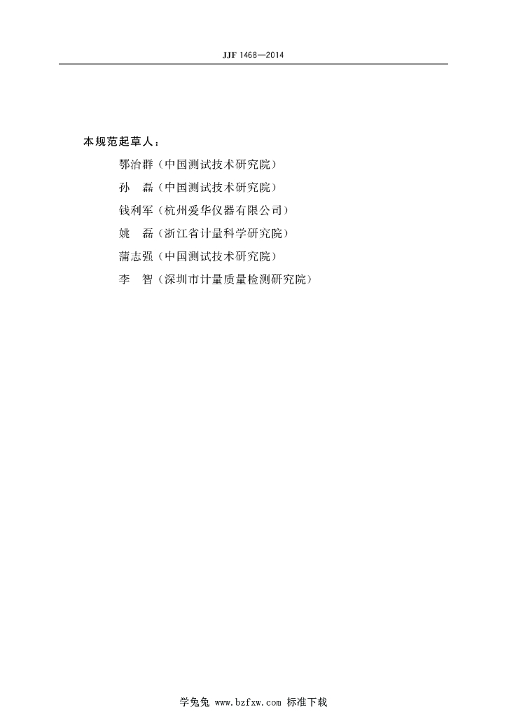鄂治群(中国测试技术研究院)、孙磊(中国测试技术研究院)、钱利军(杭州爱华仪器有限公司)、姚磊(浙江省计量科学研究院)、蒲志强(中国测试技术研究院)、李智(深圳市计量质量检测研究院)