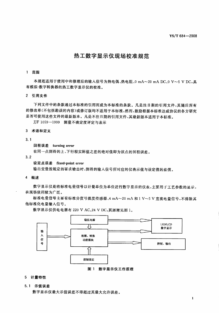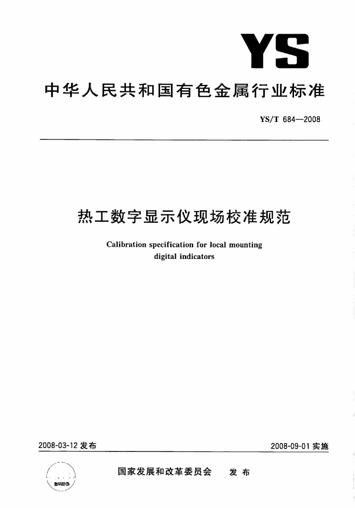 YS/T 684-2008 热工数字显示仪现场校准规范