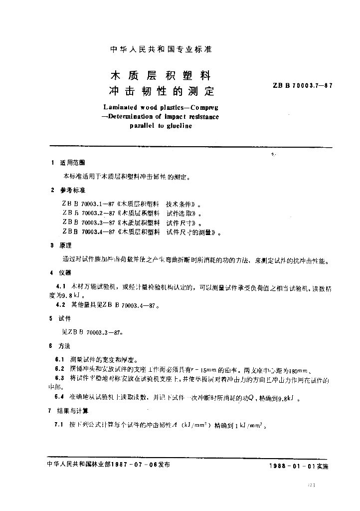 LY/T 1407-1999 木质层积塑料冲击韧性的测定
