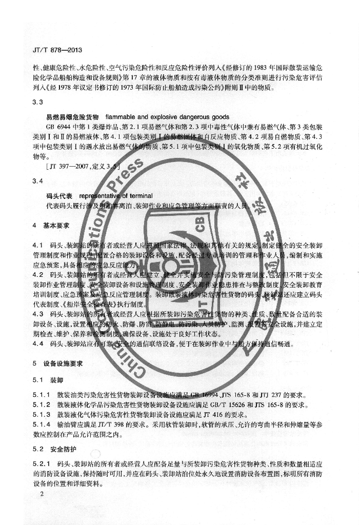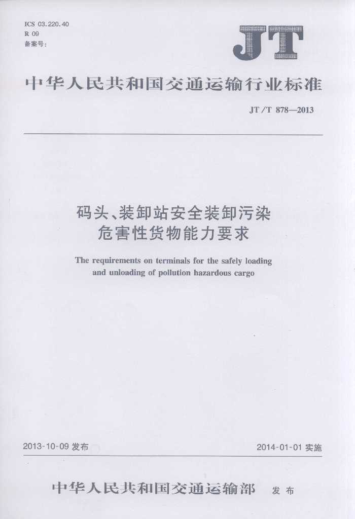 JT/T 878-2013 码头、装卸站安全装卸污染危害性货物能力要求
