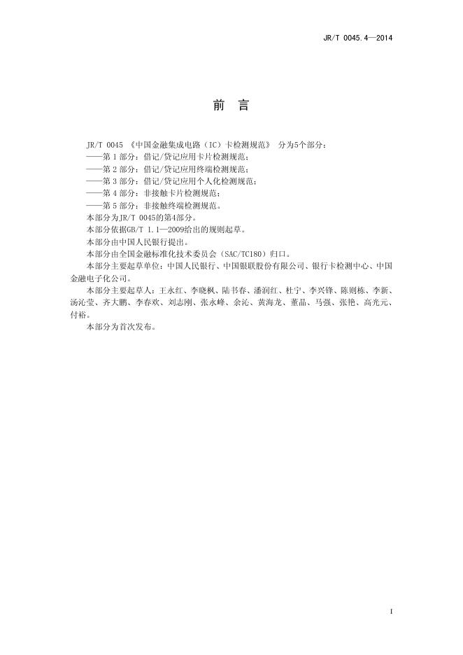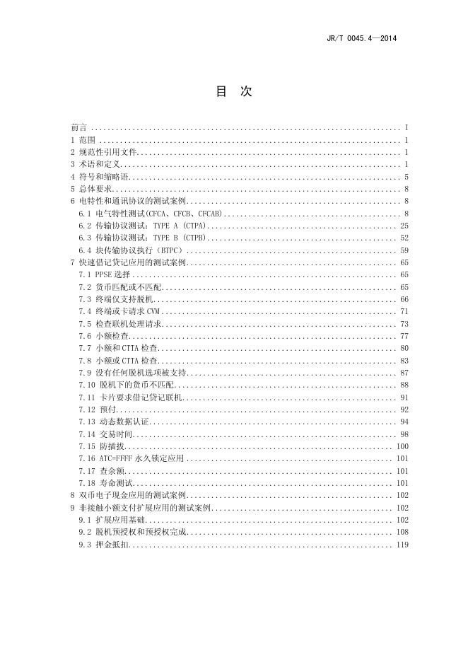 JR/T 0045.4-2014 中国金融集成电路(IC)卡检测规范 第4部分:非接触卡片检测规范