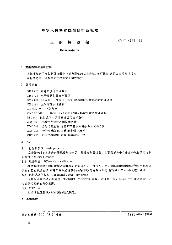 CH/T 8011-1992 正射投影仪