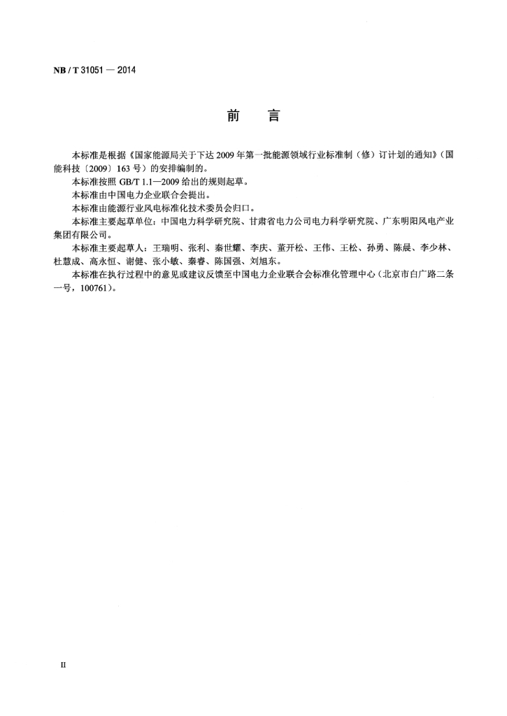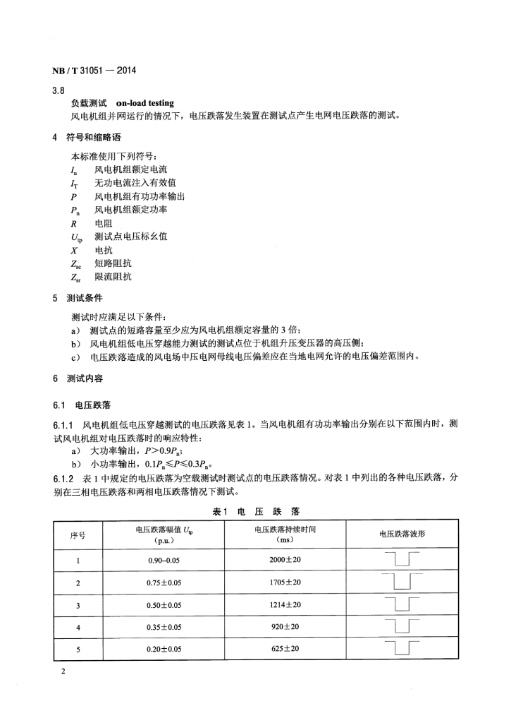 NB/T 31051-2014 风电机组低电压穿越能力测试规程