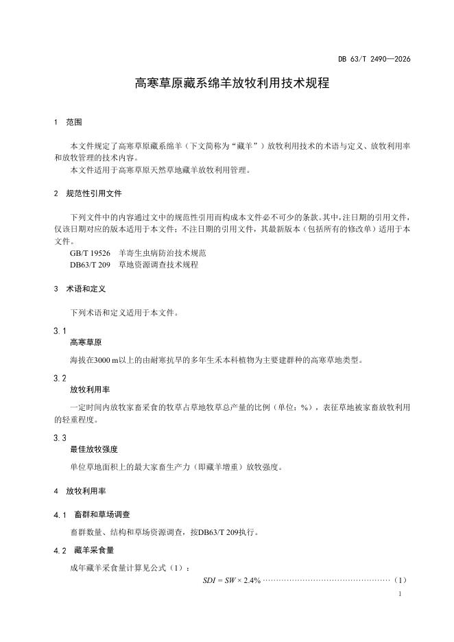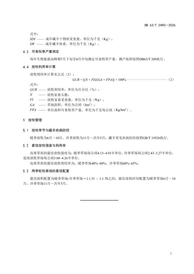 DB63/T 2490-2026 高寒草原藏系绵羊放牧利用技术规程