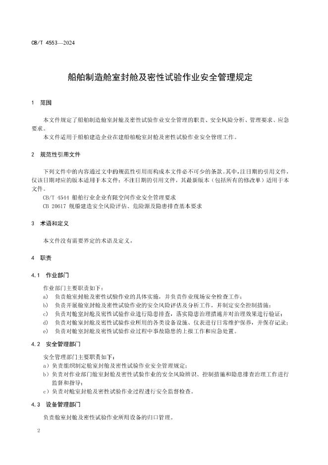 CB/T 4553-2024 船舶制造舱室封舱及密性试验作业安全管理规定