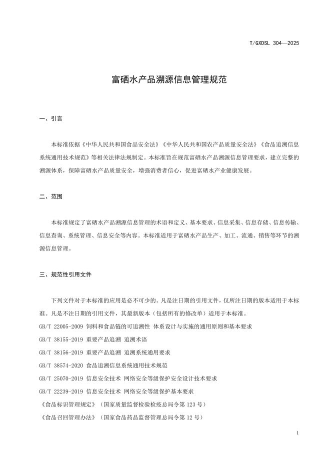 T/GXDSL 304-2025 富硒水产品溯源信息管理规范