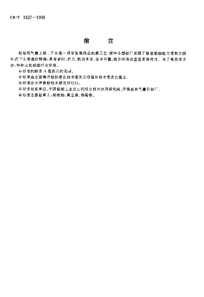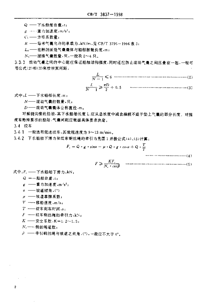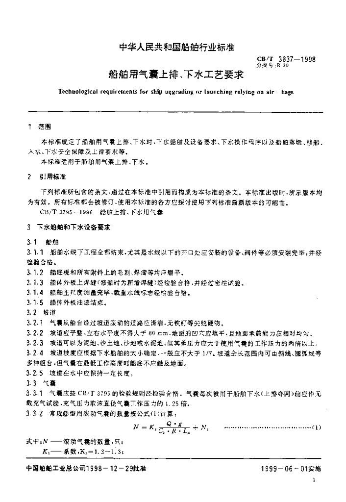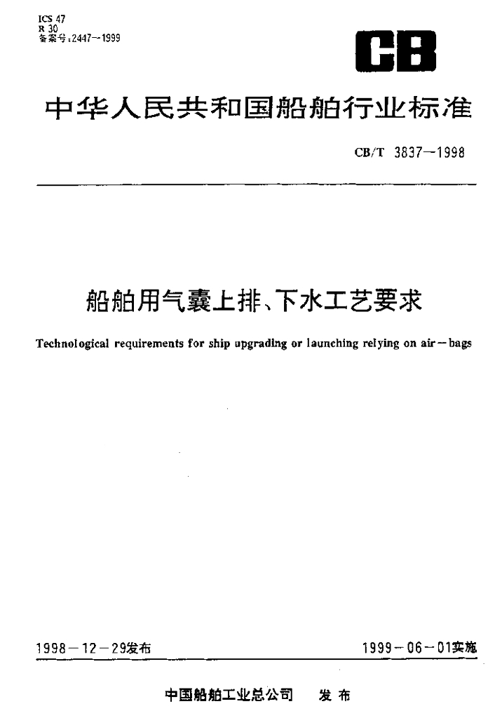 CB/T 3837-1998 船舶用气囊上排、下水工艺要求