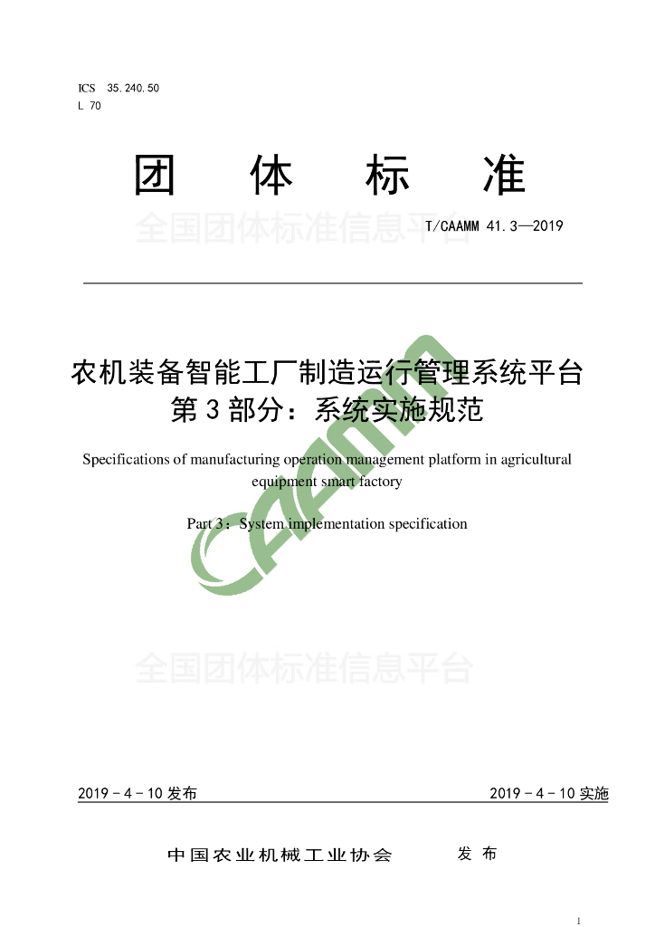 - 团体名称:中国农业机械工业协会
