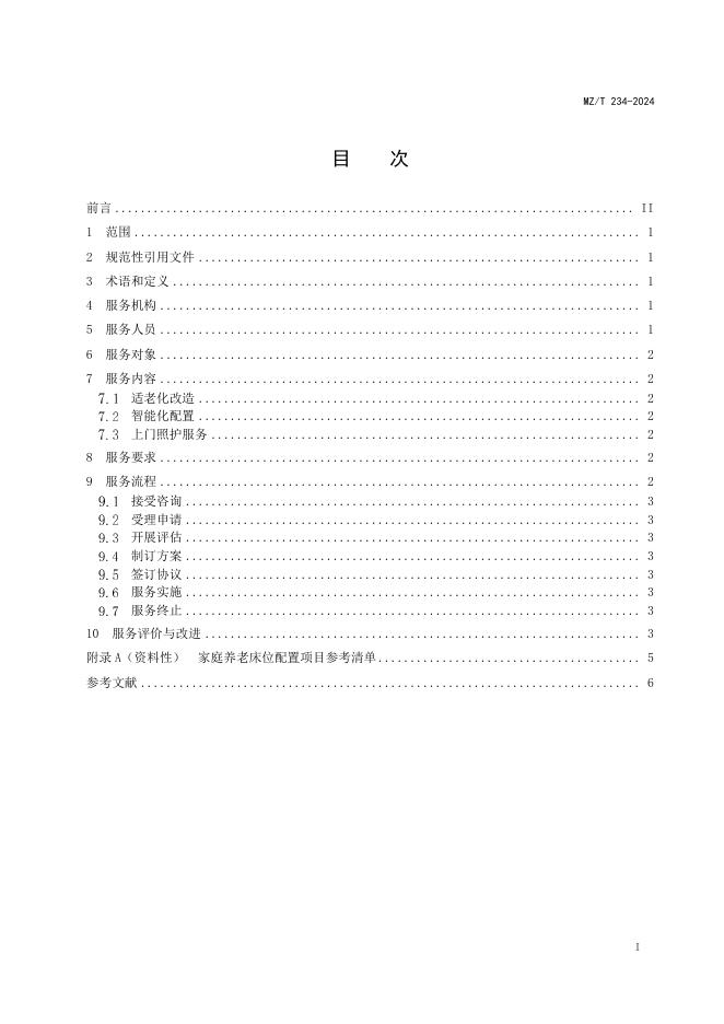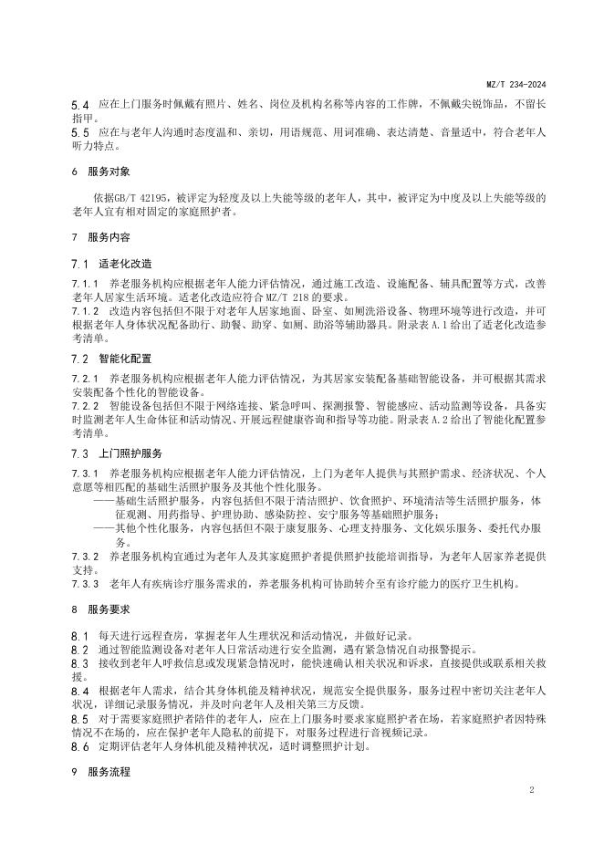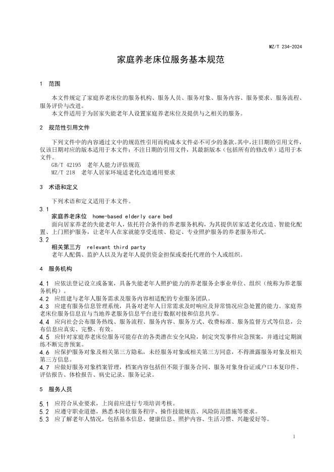 MZ/T 234-2024 家庭养老床位服务基本规范