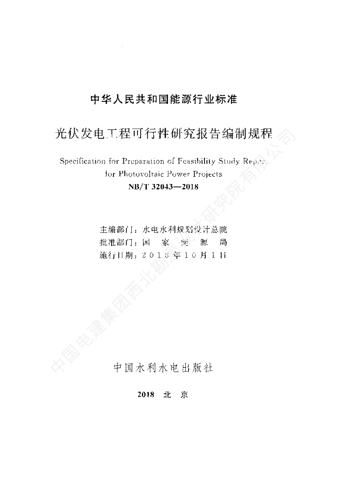 NB/T 32043-2018 光伏发电工程可行性研究报告编制规程(附条文说明)