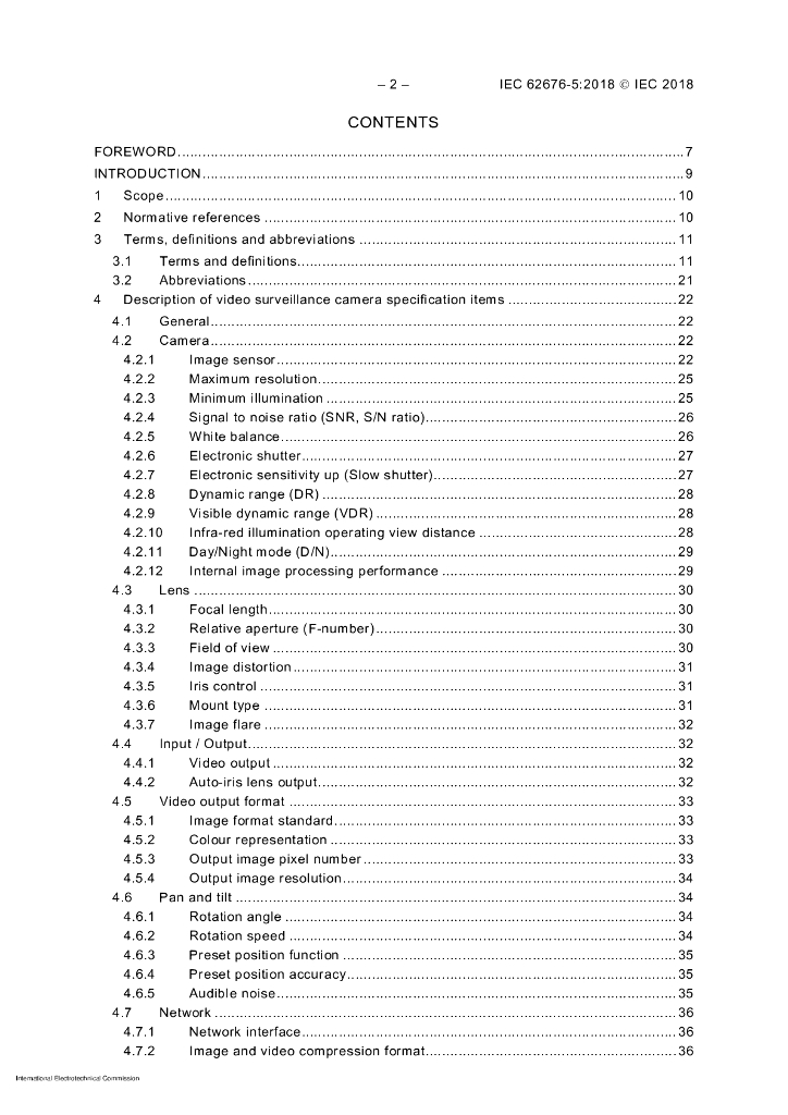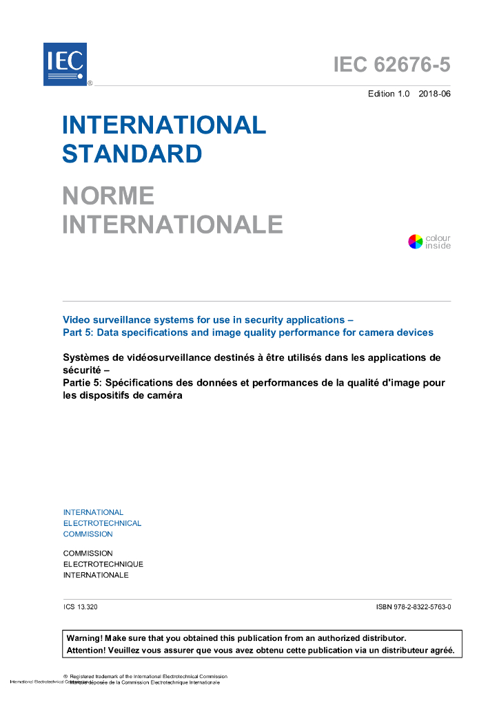 IEC 62676-5-2018 用于安全应用程序的视频监控系统 第5部分:摄像机设备的数据规格和图像质量性能