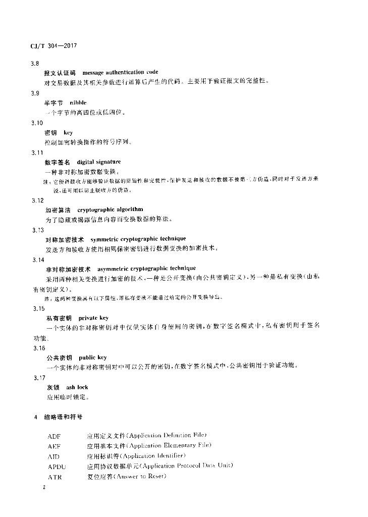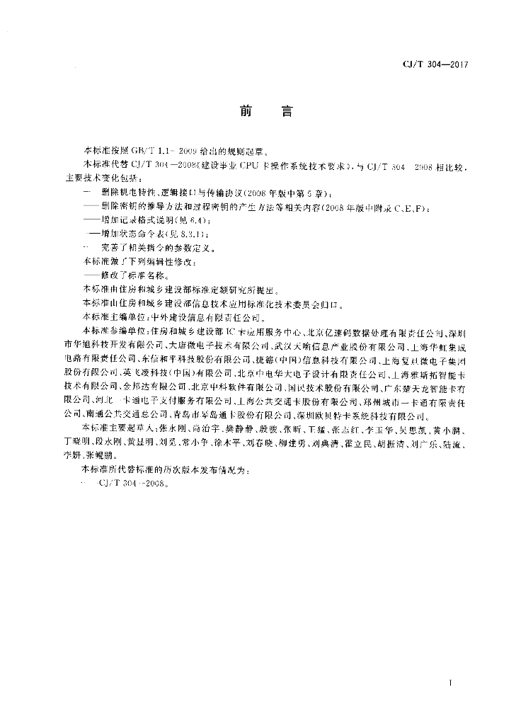 CJ/T 304-2017 建设事业智能卡操作系统技术要求