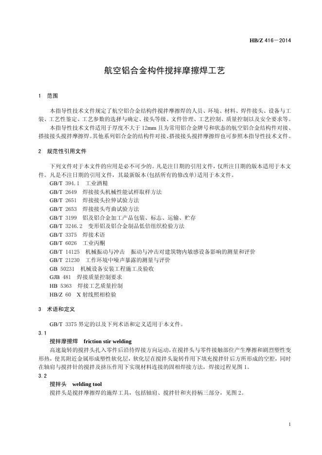 HB_Z 416-2014(2017) 航空铝合金构件搅拌摩擦焊工艺