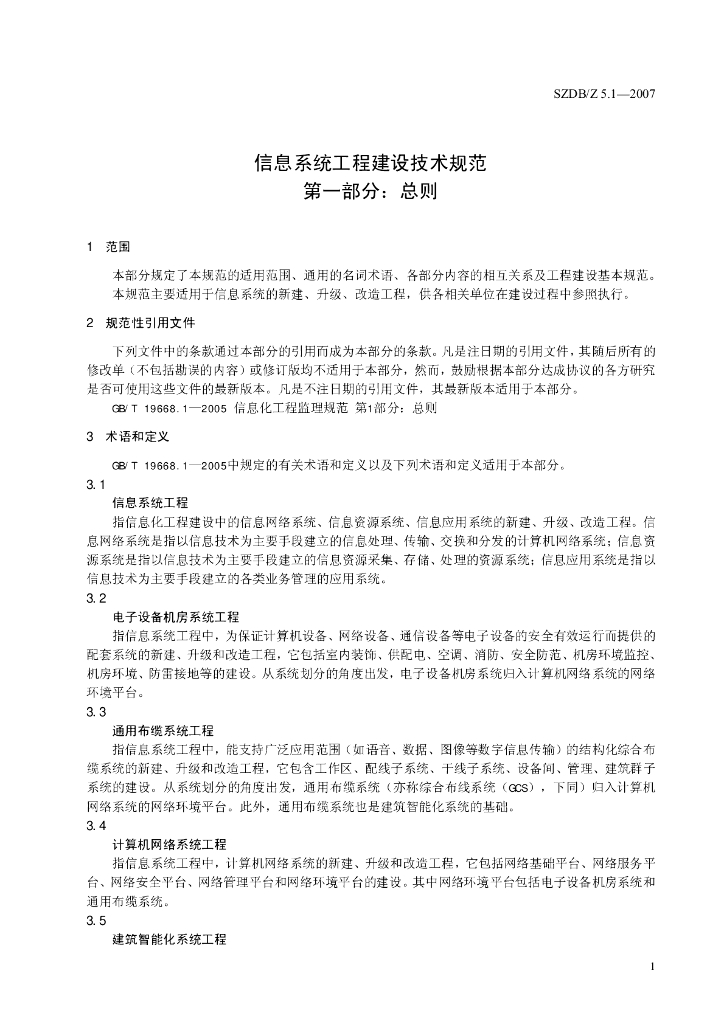 SZDB/Z 5.1-2007 信息系统工程建设技术规范总则