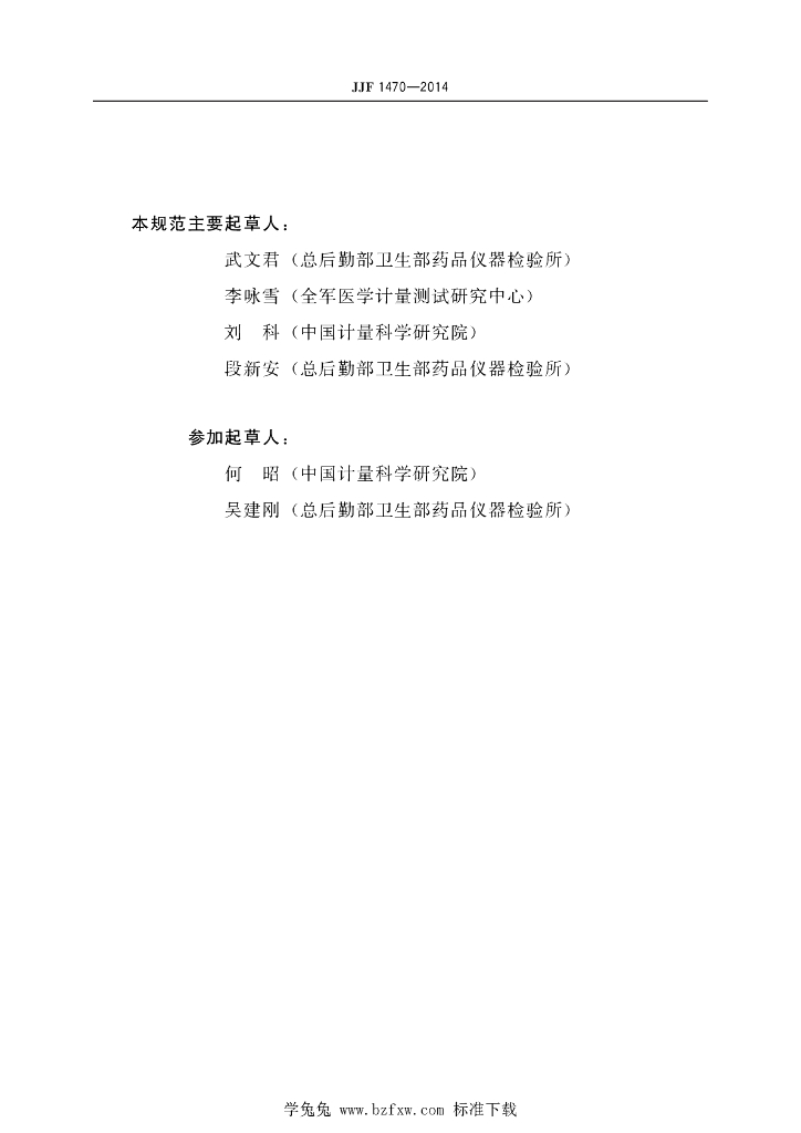 武文君(总后勤部卫生部药品仪器检验所)、李咏雪(全军医学计量测试研究中心)、刘科(中国计量科学研究院)、段新安(总后勤部卫生部药品仪器检验所)、何昭(中国计量科学研究院)、吴建刚(总后勤部卫生部药品仪器检验所)
