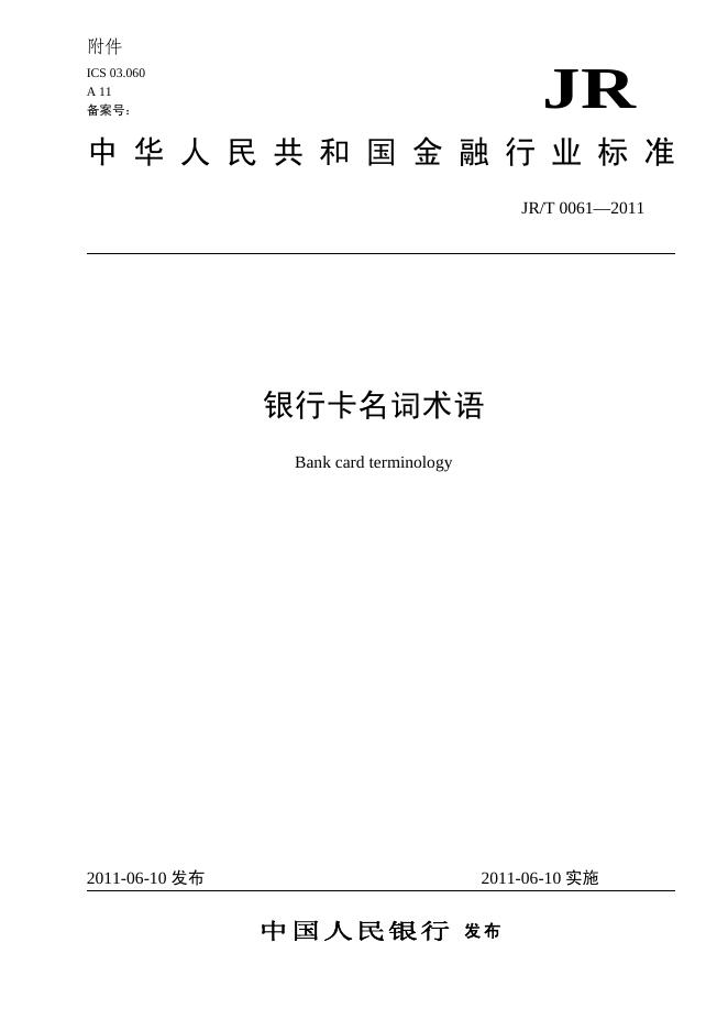 JR/T 0061-2011 银行卡名词术语