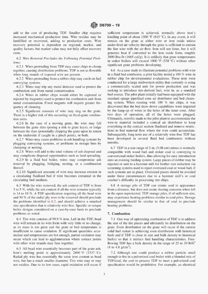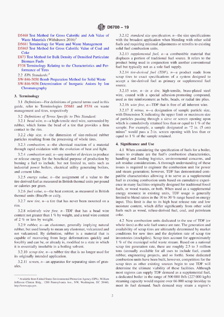 ASTM D6700-19 Standard Guide for Use of Scrap Tires as Tire-Derived Fuel