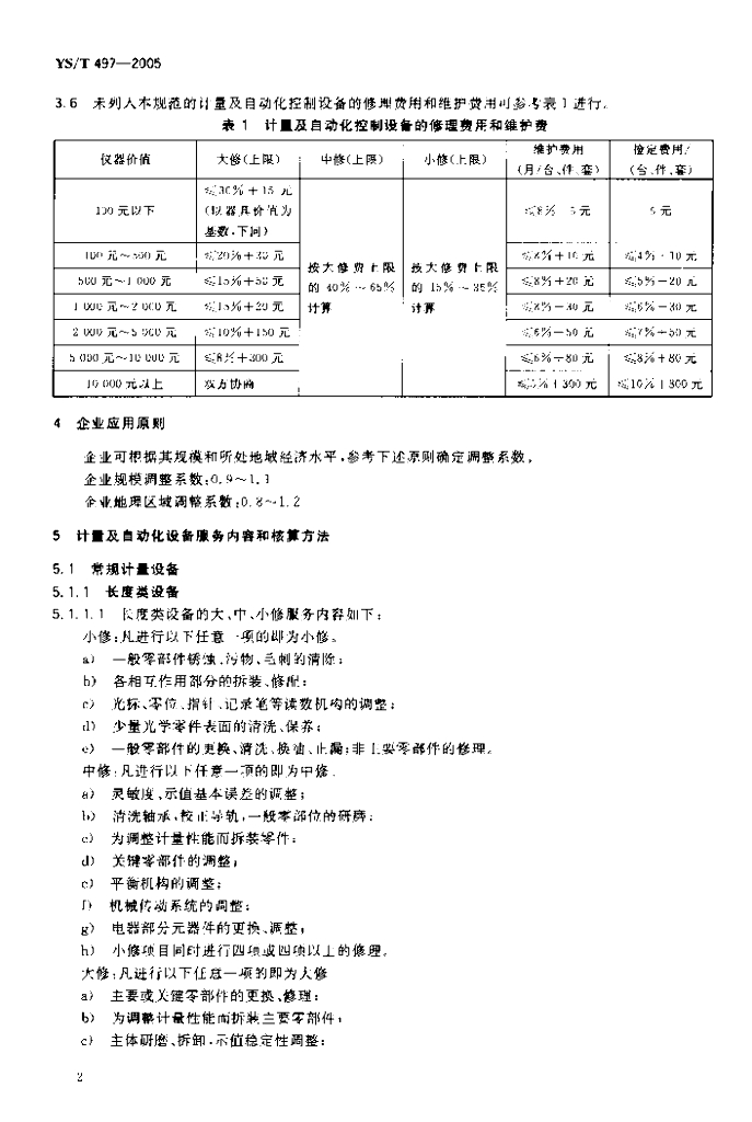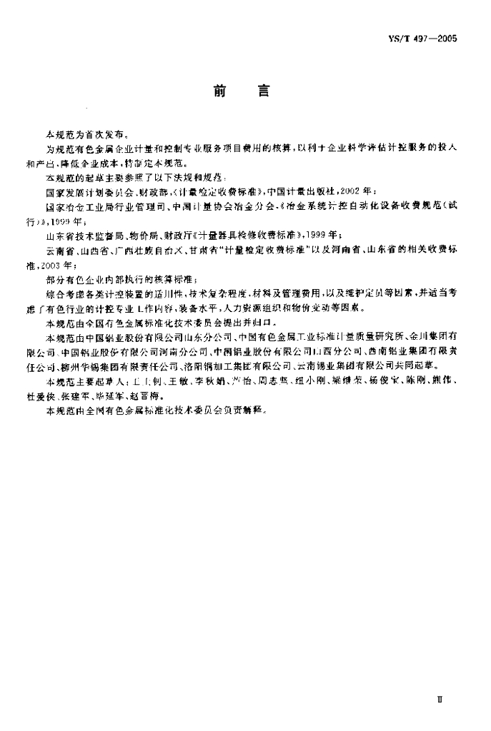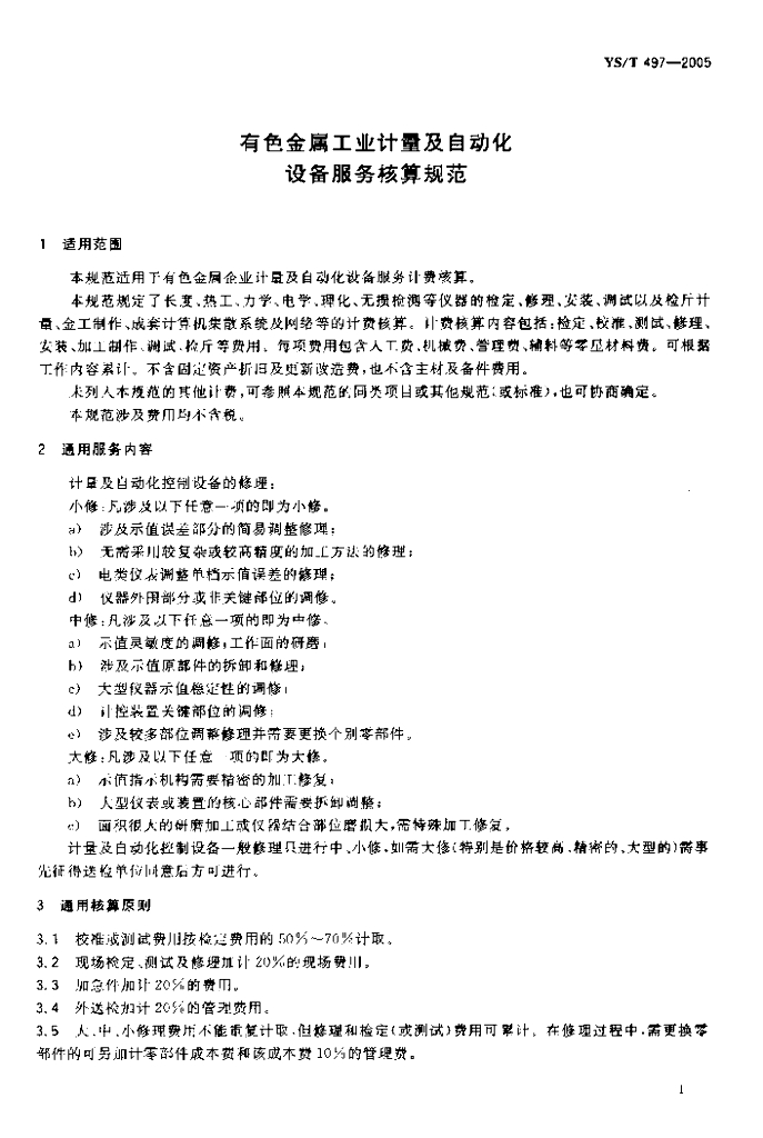 YS/T 497-2005 有色金属工业计量及自动化设备服务核算规范