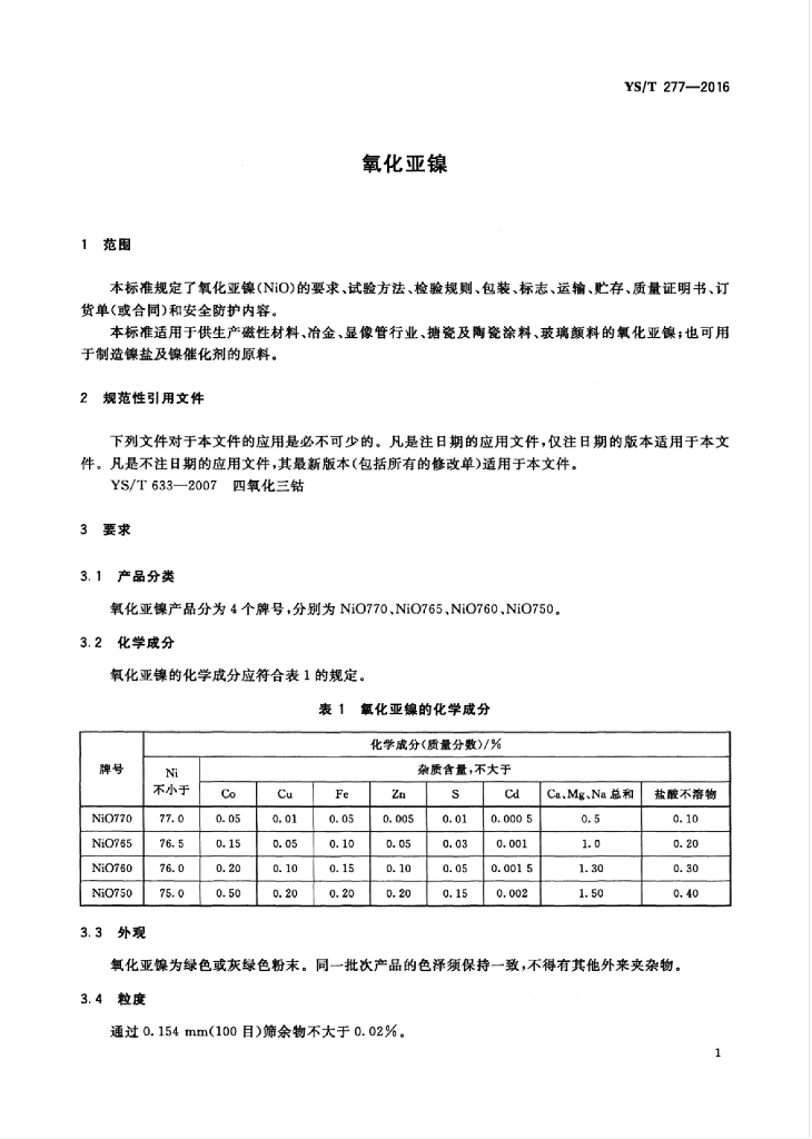 YS/T 277-2016 氧化亚镍