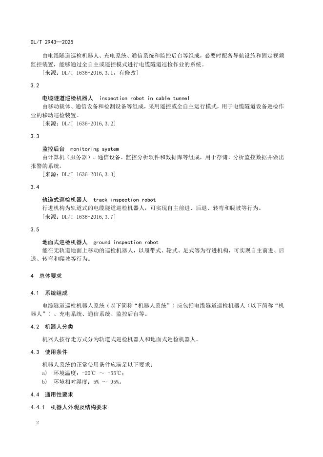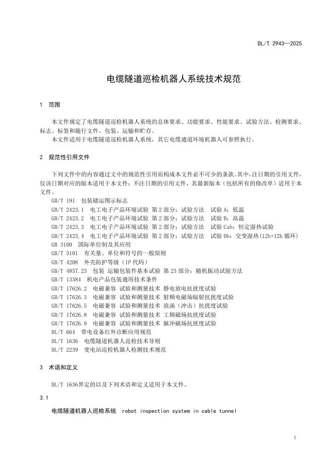 DL/T 2943-2025 电缆隧道巡检机器人系统技术规范