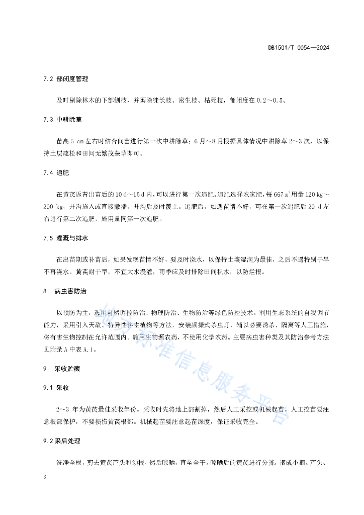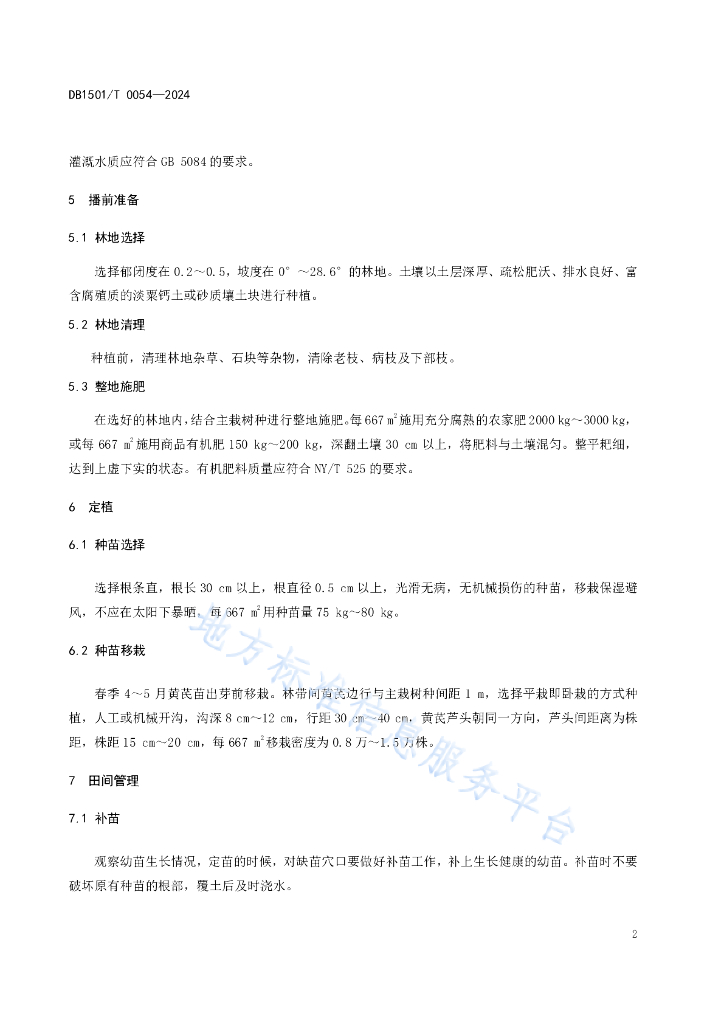 DB1501/T 0054-2024 黄芪林间生态种植技术规程