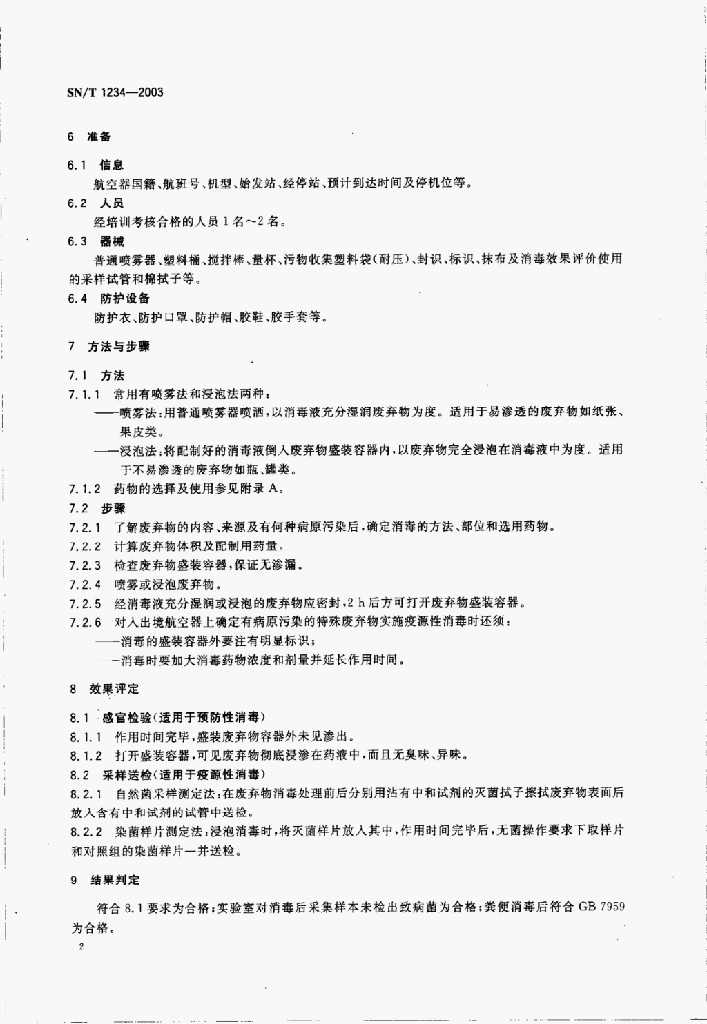 SN/T 1234-2003 入出境航空器废弃物消毒规程