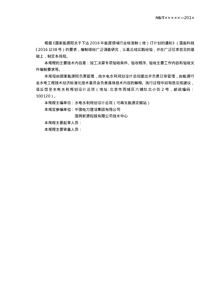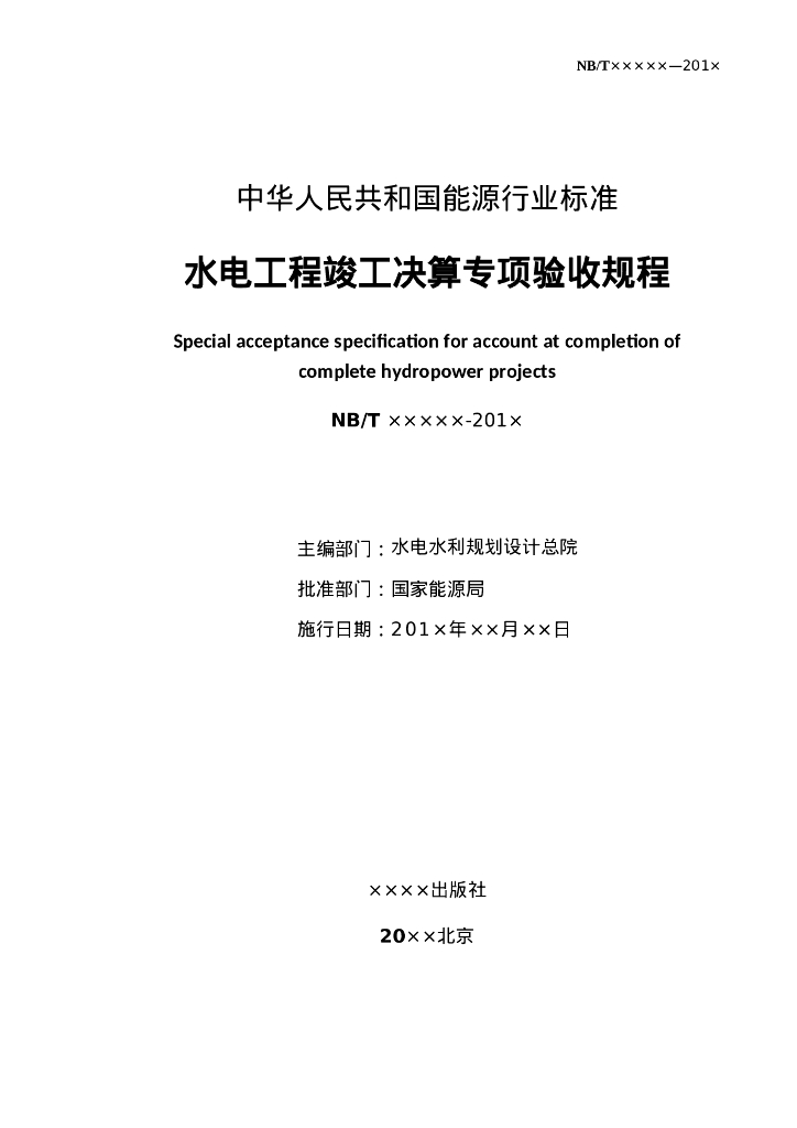 NB/T xxxxx-201x 水电工程竣工决算专项验收规程(征求意见稿)