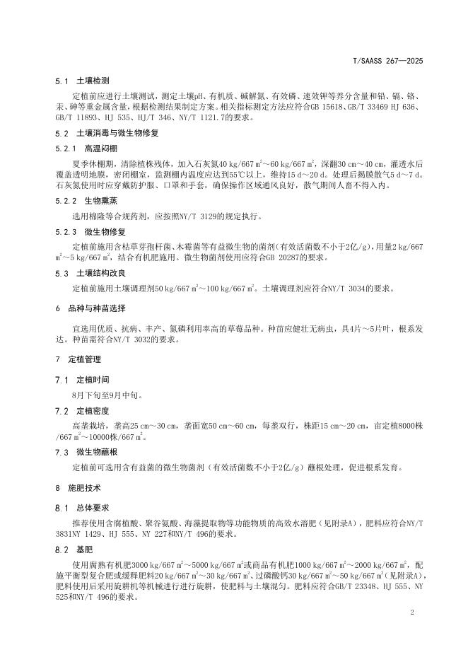 T/SAASS 267-2025 设施草莓土壤生境与高效生产联合调控技术规程