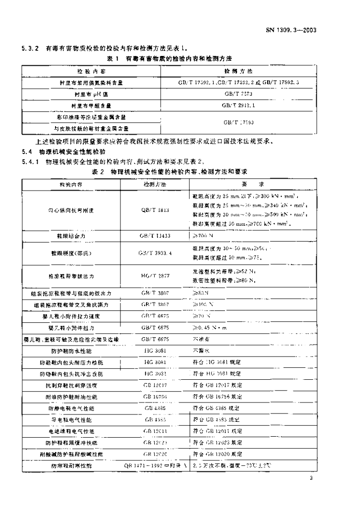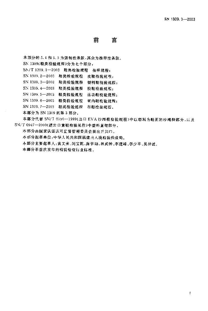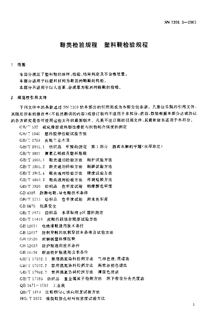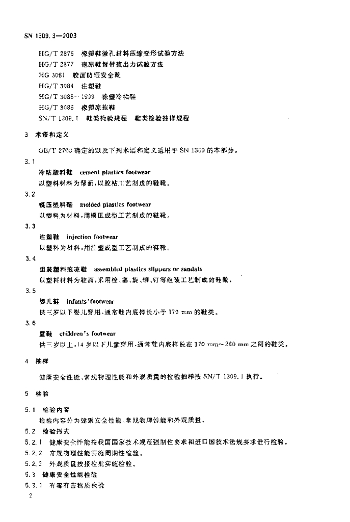 SN 1309.3-2003 鞋类检验规程 塑料鞋检验规程
