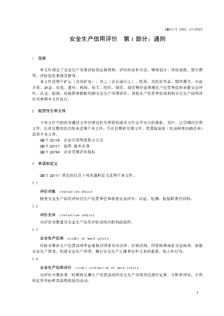 DB11/T 2401.1-2025 安全生产信用评价 第1部分:通则