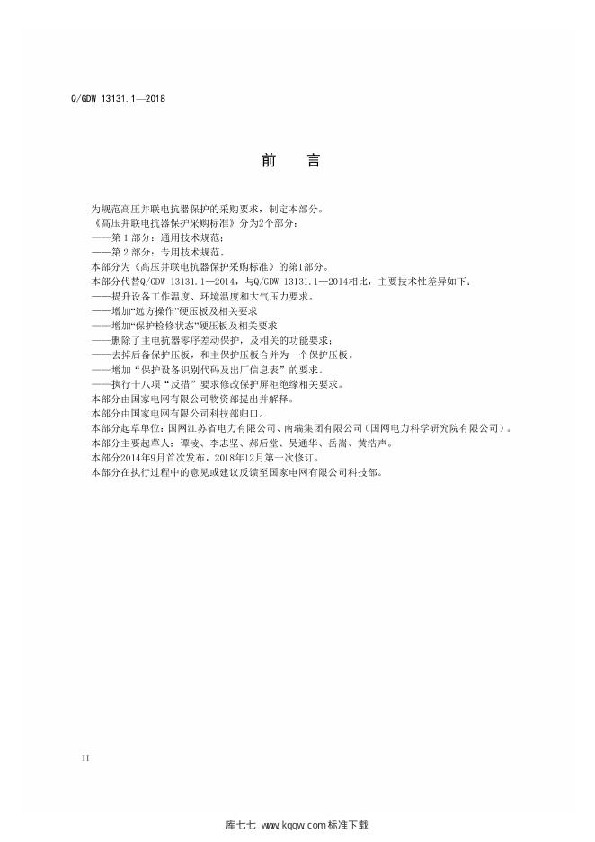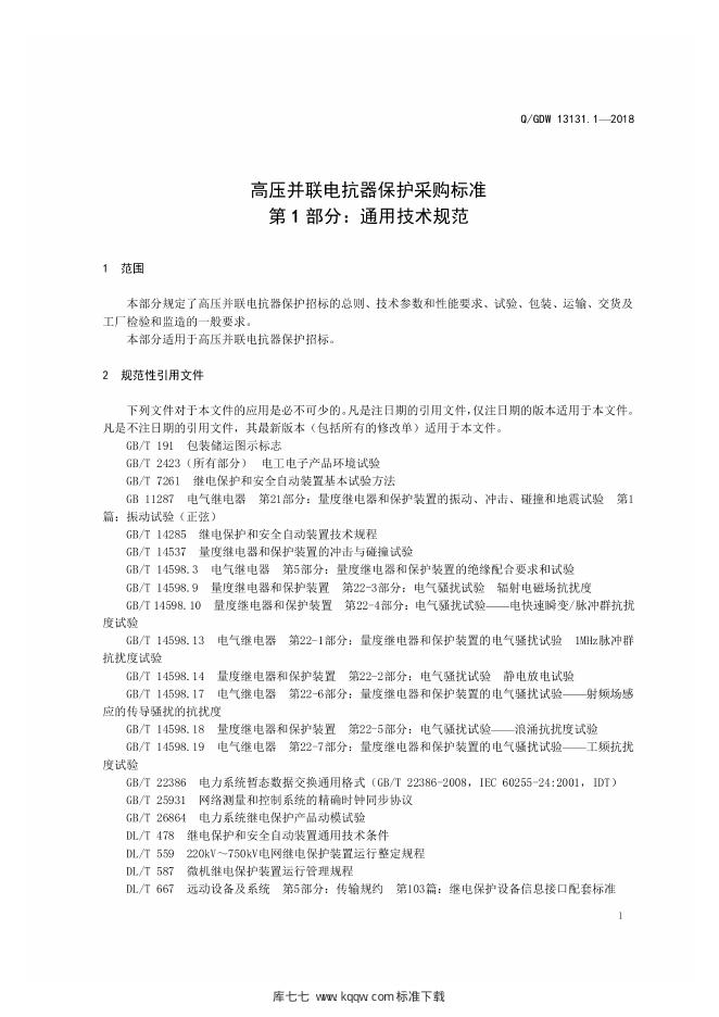 Q/GDW 13131.1-2018 高压并联电抗器保护采购标准 第1部分:通用技术规范
