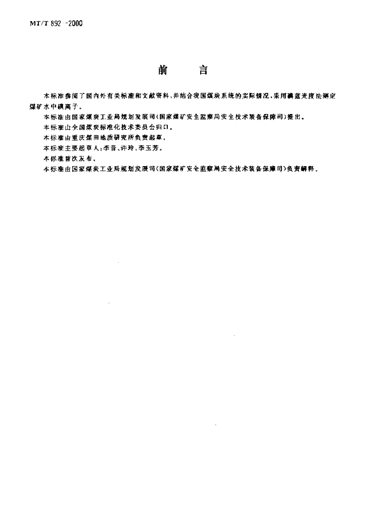 MT/T 892-2000 煤矿水中碘离子的测定方法
