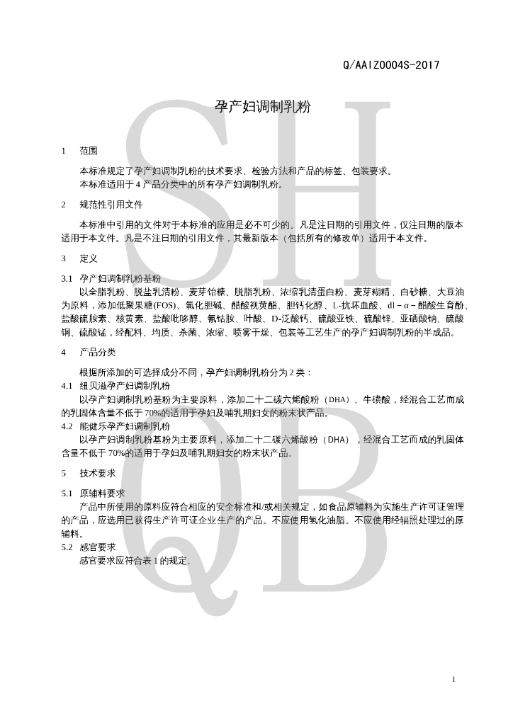 Q/AAIZ 0004S-2017 孕产妇调制乳粉