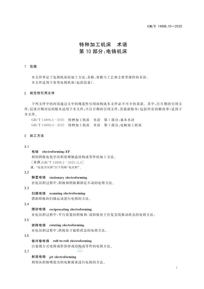 GB/T 14896.10-2025 特种加工机床 术语 第10部分:电铸机床