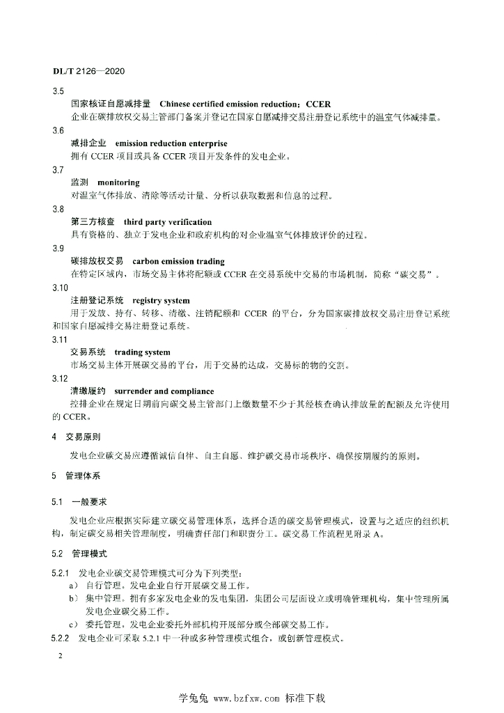 DL/T 2126-2020 发电企业碳排放权交易技术指南