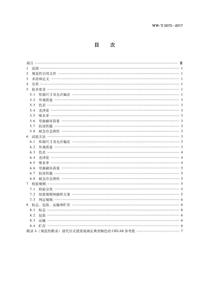WW/T 0073-2017 清代官式建筑修缮材料 琉璃瓦