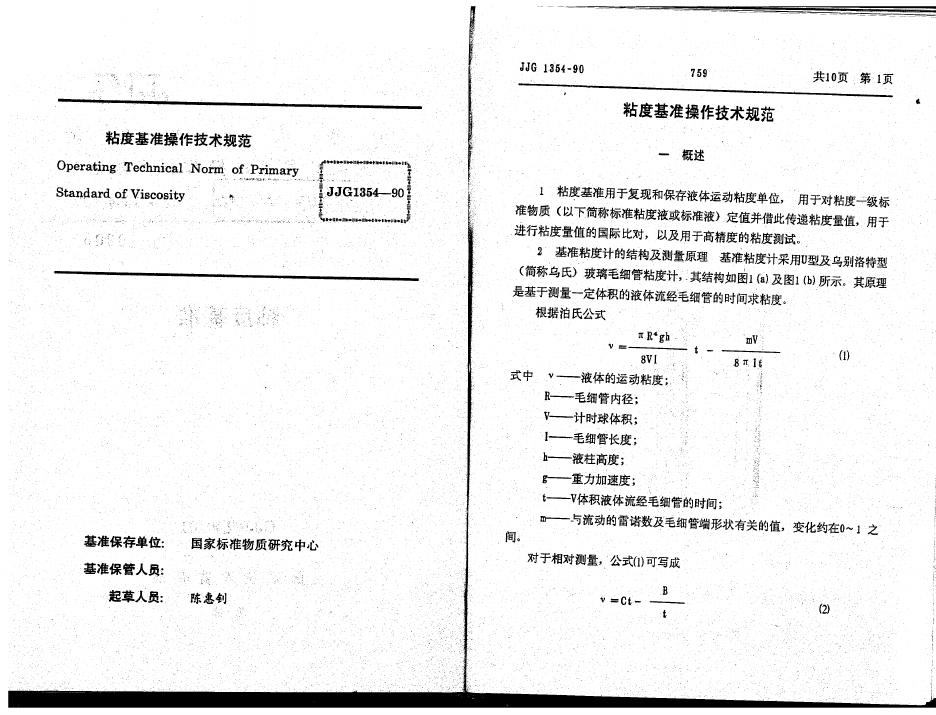JJF 1354-1990 粘度基准操作技术规范