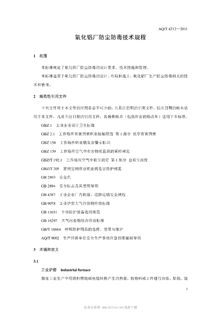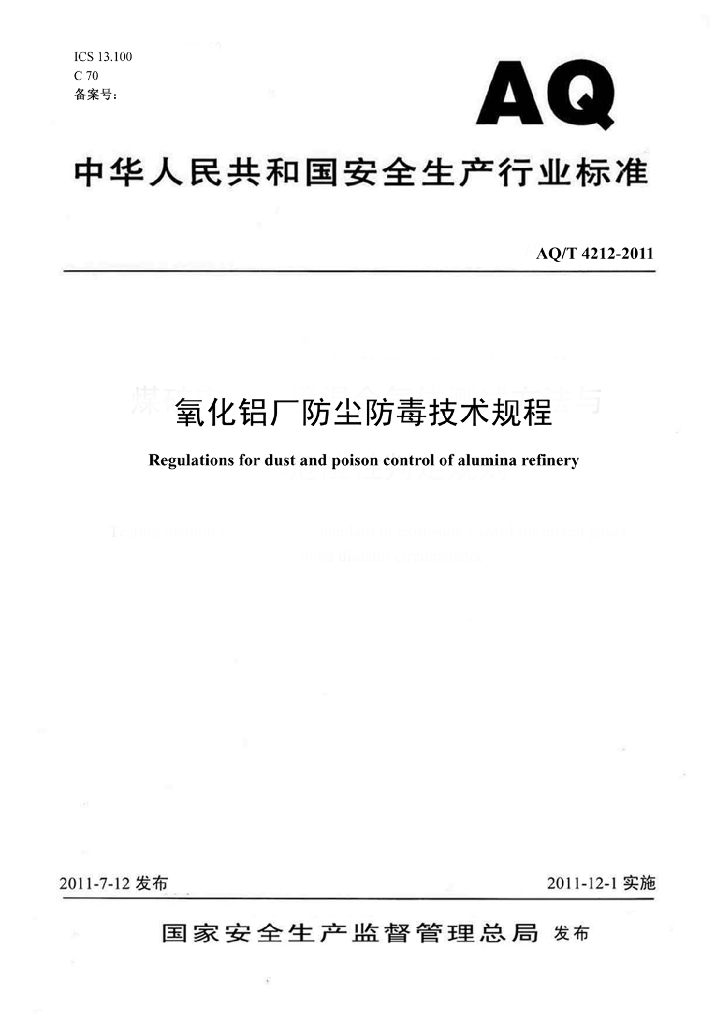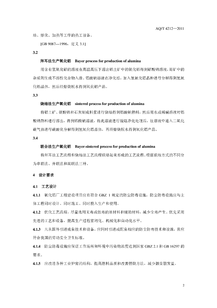 AQ/T 4212-2011 氧化铝厂防尘防毒技术规程习