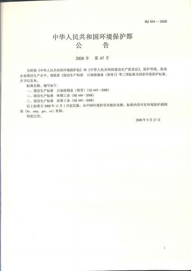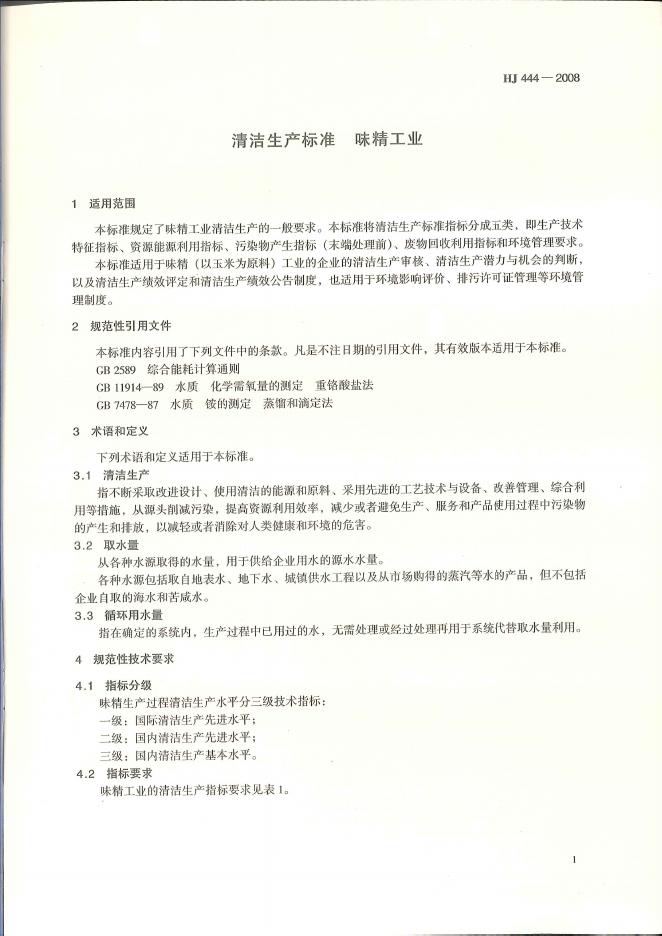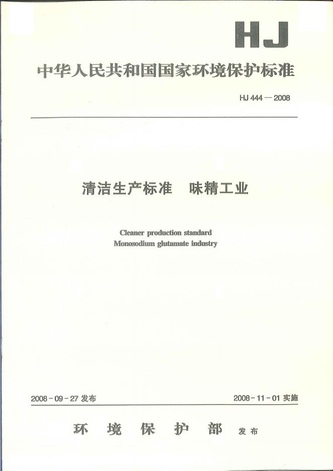 HJ 444-2008 清洁生产标准 味精工业