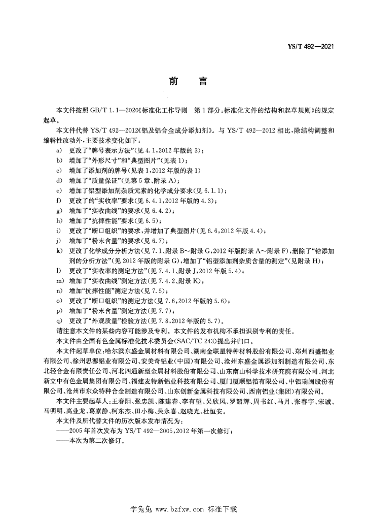 - 代替标准:YS/T 492-2012