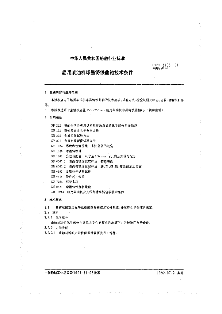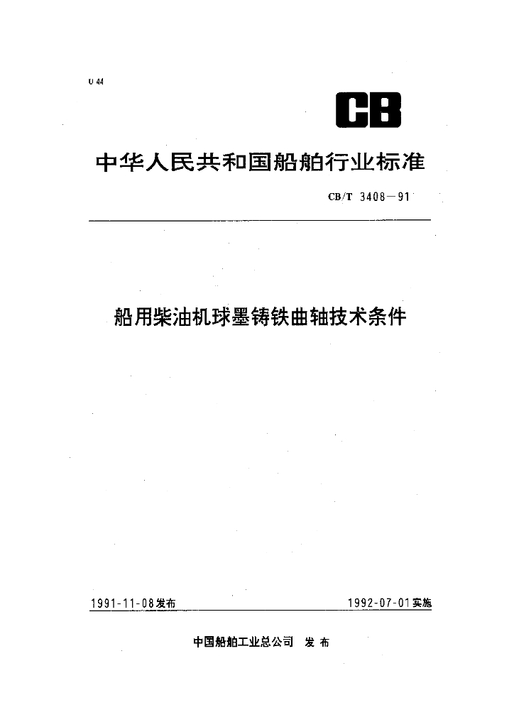CB/T 3408-1991 船用柴油机球墨铸铁曲轴技术条件