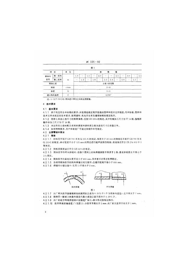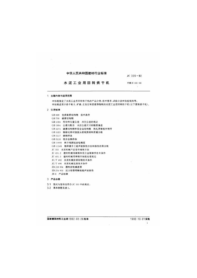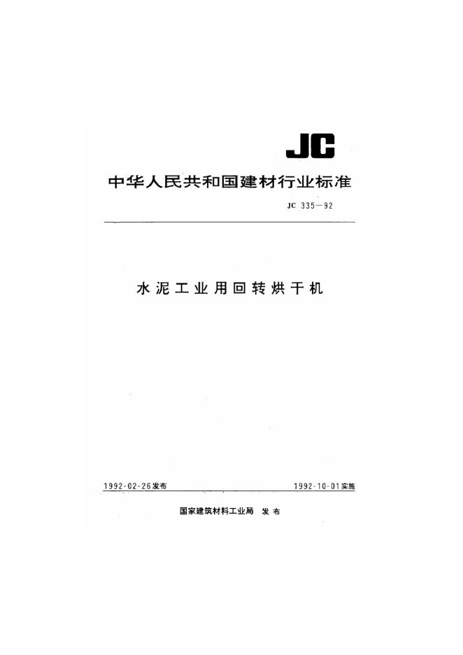 JC 335-1992 水泥工业用回转烘干机
