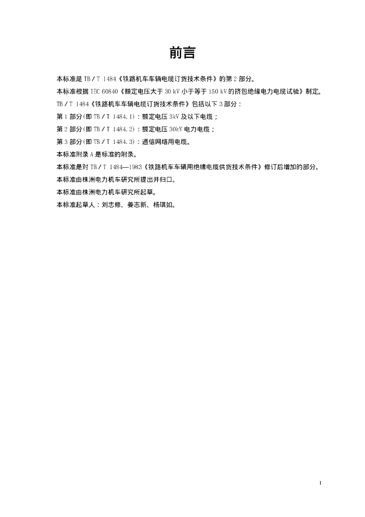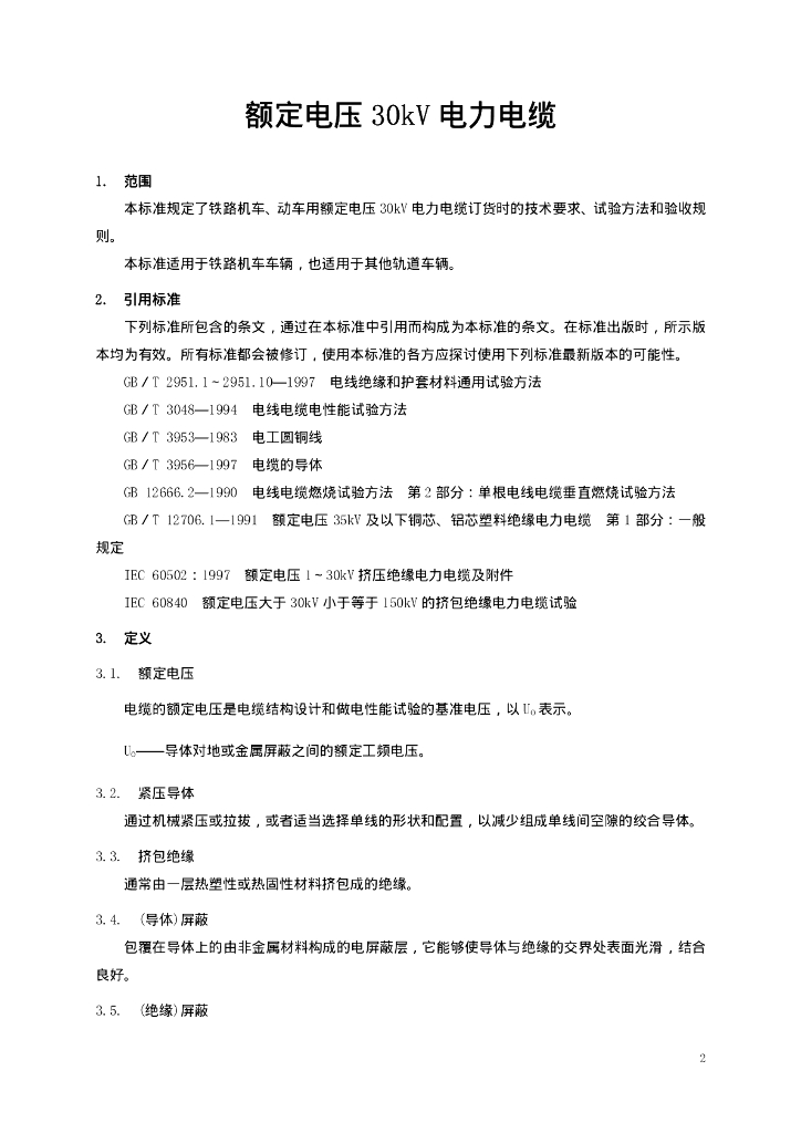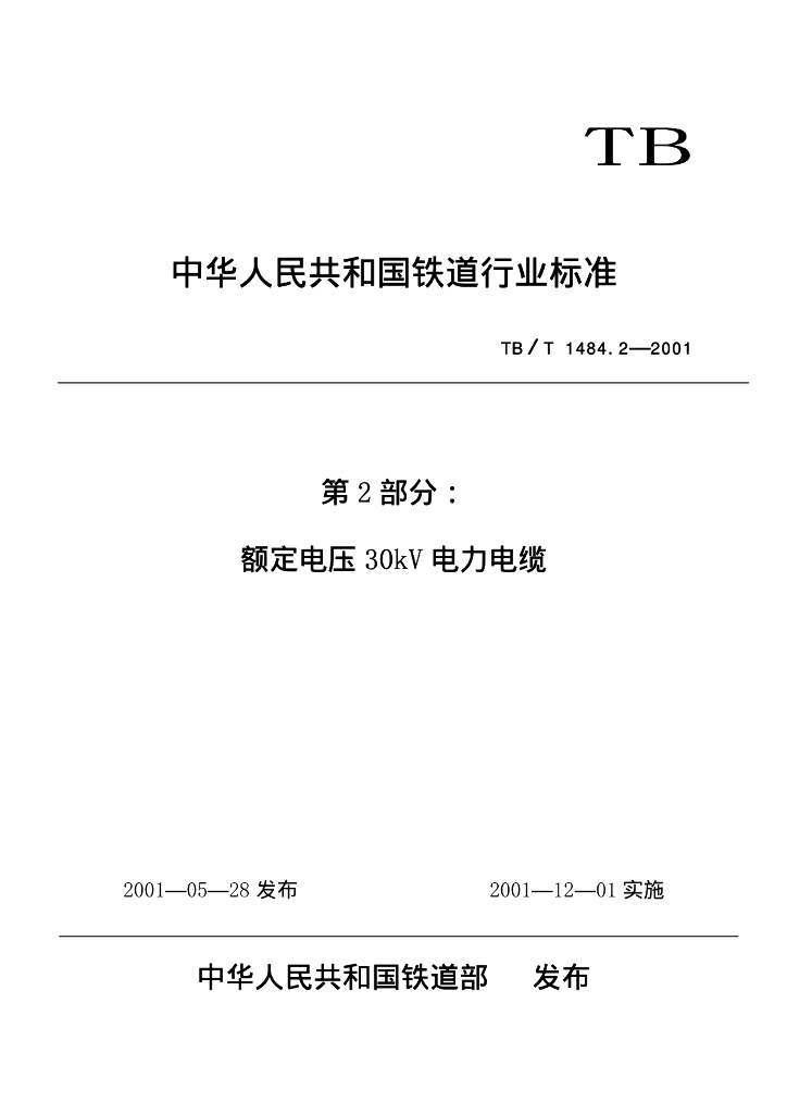 TB/T 1484.2-2001 铁路机车车辆电缆订货技术条件 第2部分:额定电压30 kV电力电缆