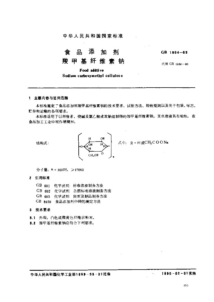 GB 1904-1989 食品添加剂 羧甲基纤维素钠