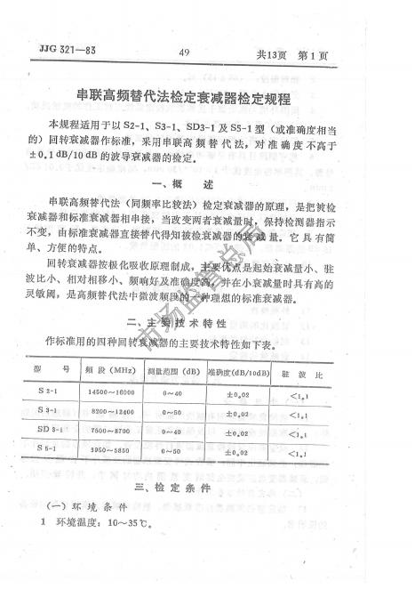 JJG 321-1983 串联高频替代法检定衰减器检定规程