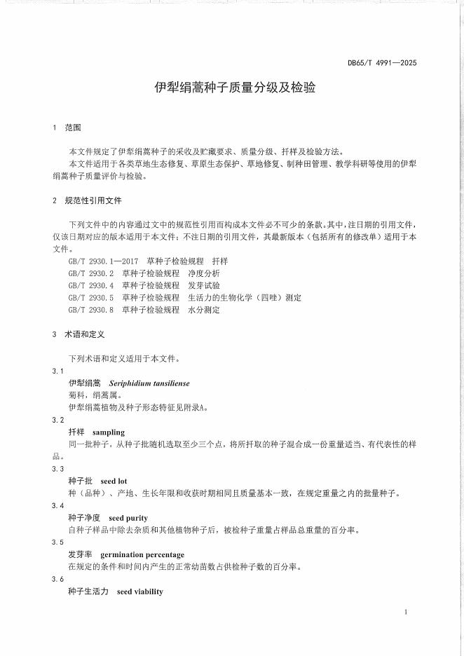 DB65/T 4991-2025 伊犁绢蒿种子质量分级及检验