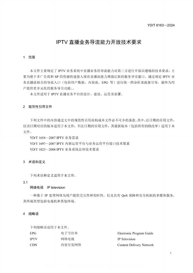 YD/T 6163-2024 IPTV直播业务导流能力开放技术要求