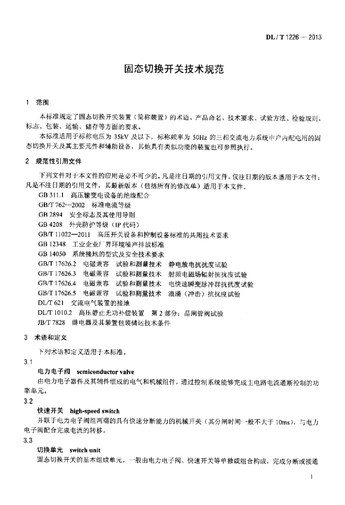 DL/T 1226-2013 固态切换开关技术规范