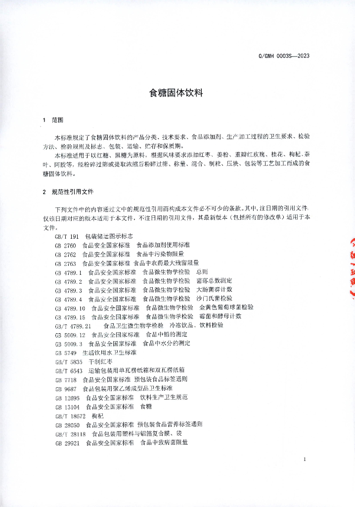 Q/GMH 0003S-2023 食糖固体饮料 广西南宁桂美红食品有限公司